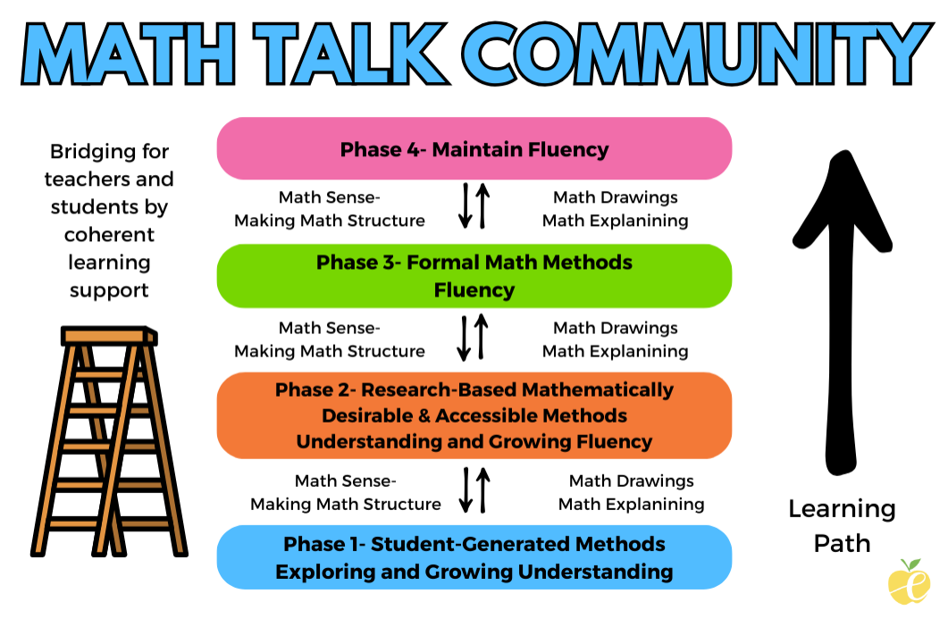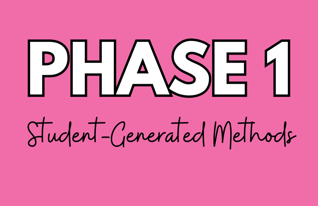 This phase is where we connect what they come up with to the researched-based algorithms we know will help build a strong foundation and help us get to efficient methods. In this phase, we connect, teach explicitly the methods, and ensure students can draw and explain (the why and the how) of their process.